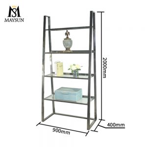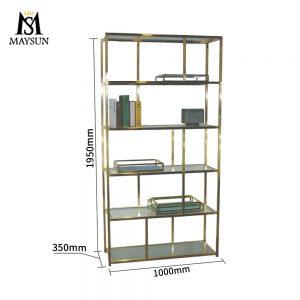 Modern light luxury gold stainless steel display stand,glass laminated bookshelf
