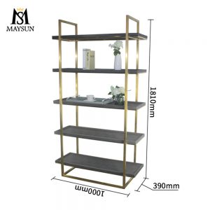 Modern metal frame wooden interlayer rectangle standing display stand(storage shelf)