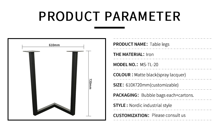 Factory Outlet metal black matte paint Customizable size U shaped Dining table legs