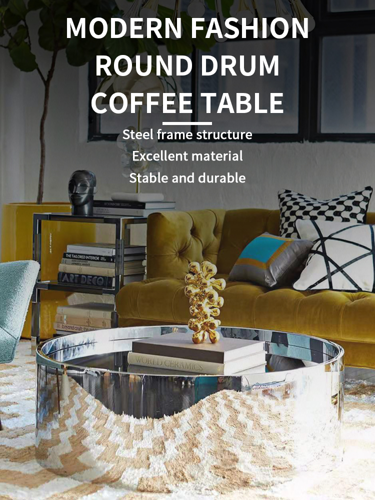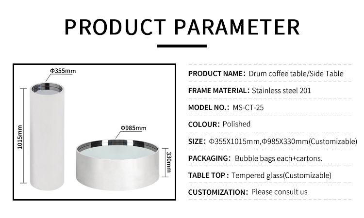 Fashion drum shaped stainless steel side table coffee table decorative column