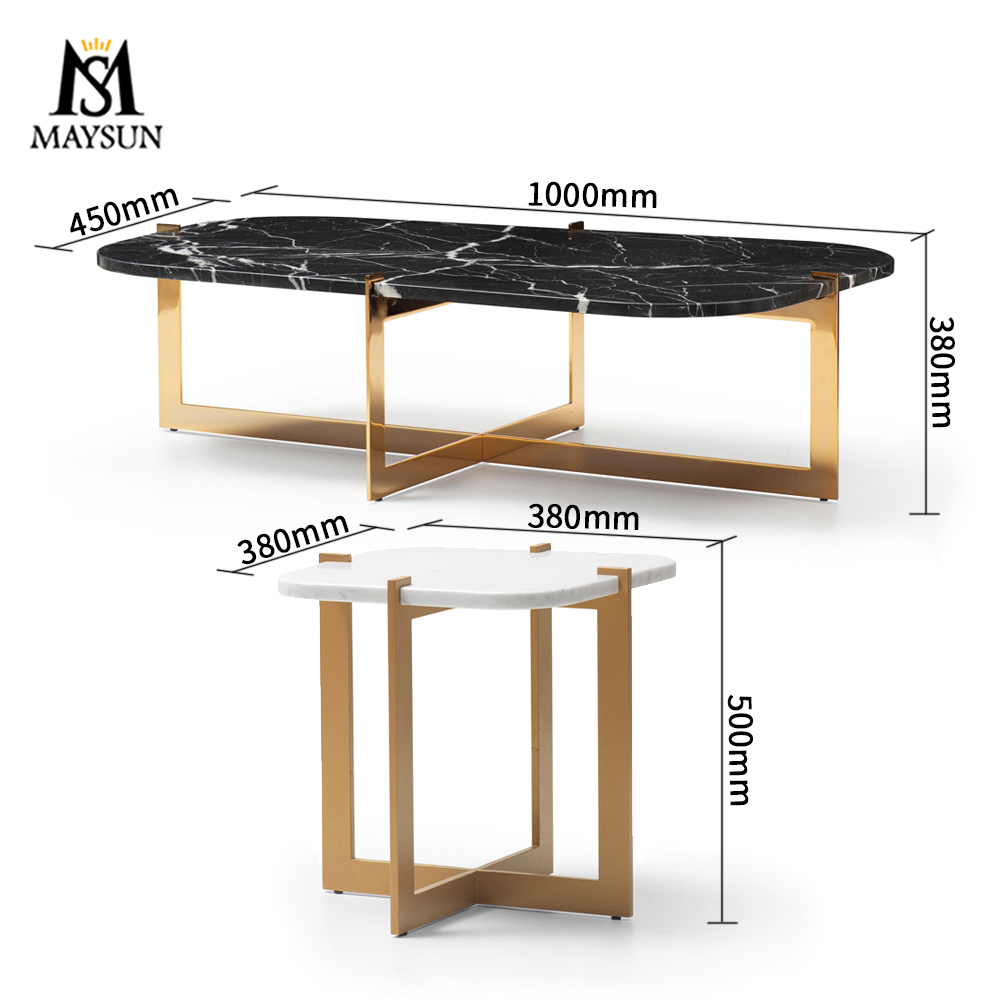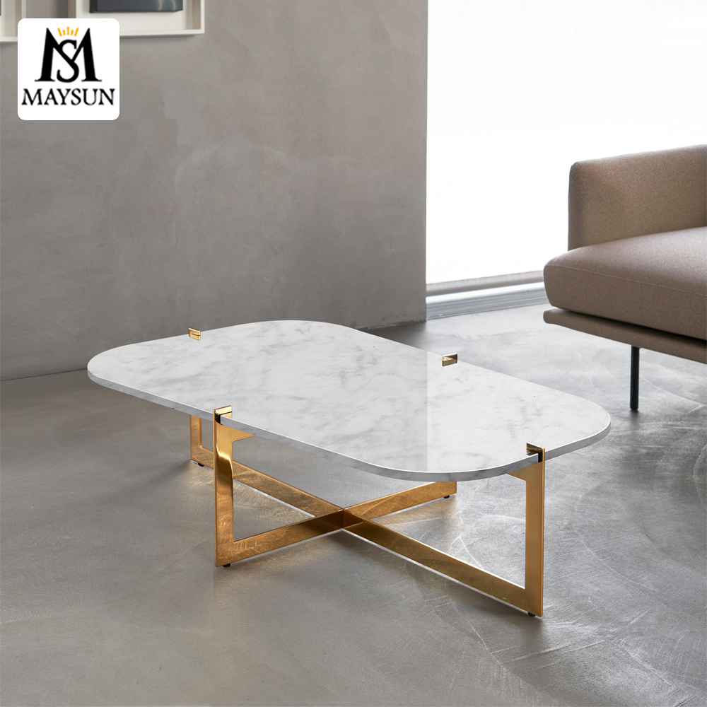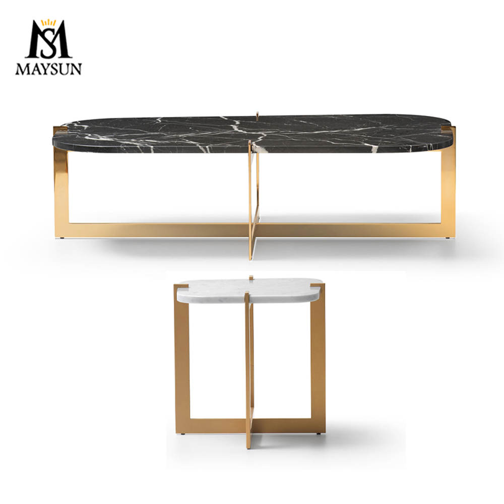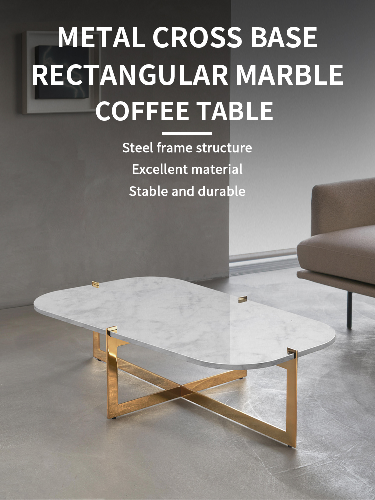 Metal stainless steel cross base rectangular marble coffee table or side table