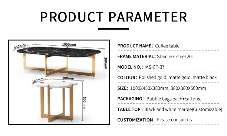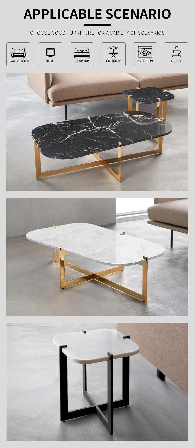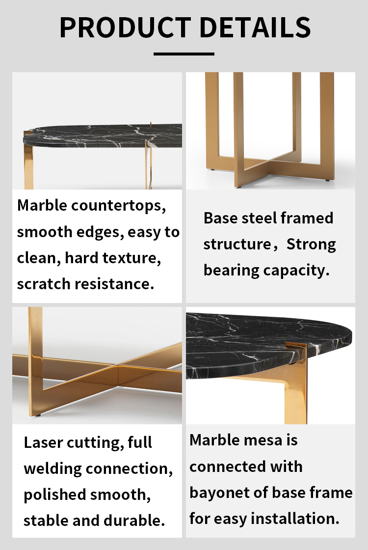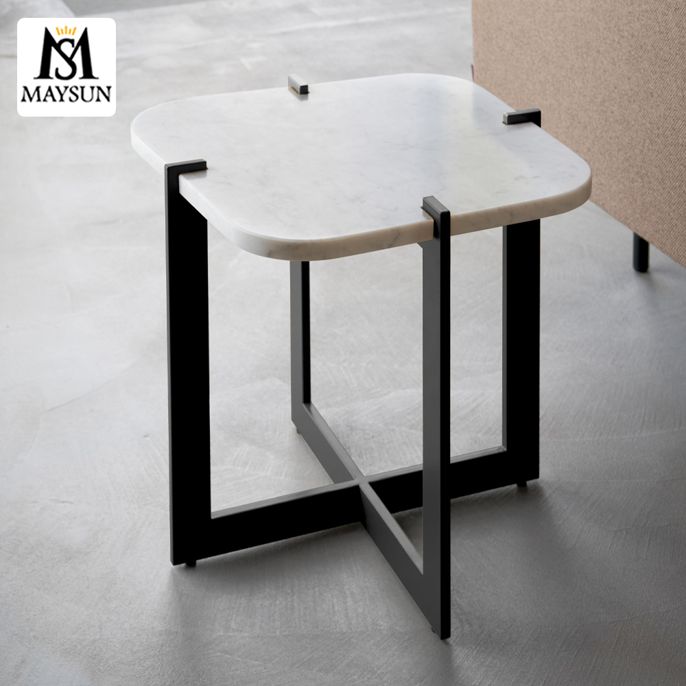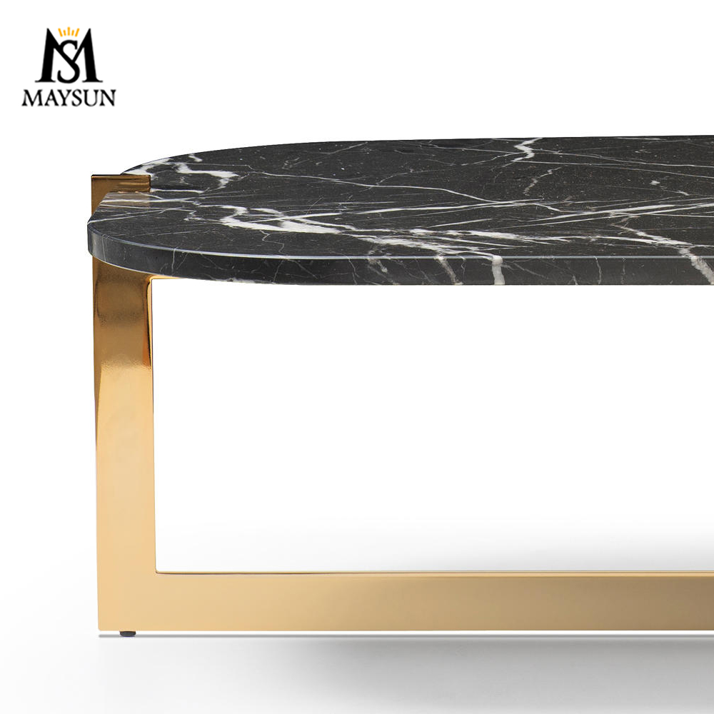 Metal stainless steel cross base rectangular marble coffee table or side table