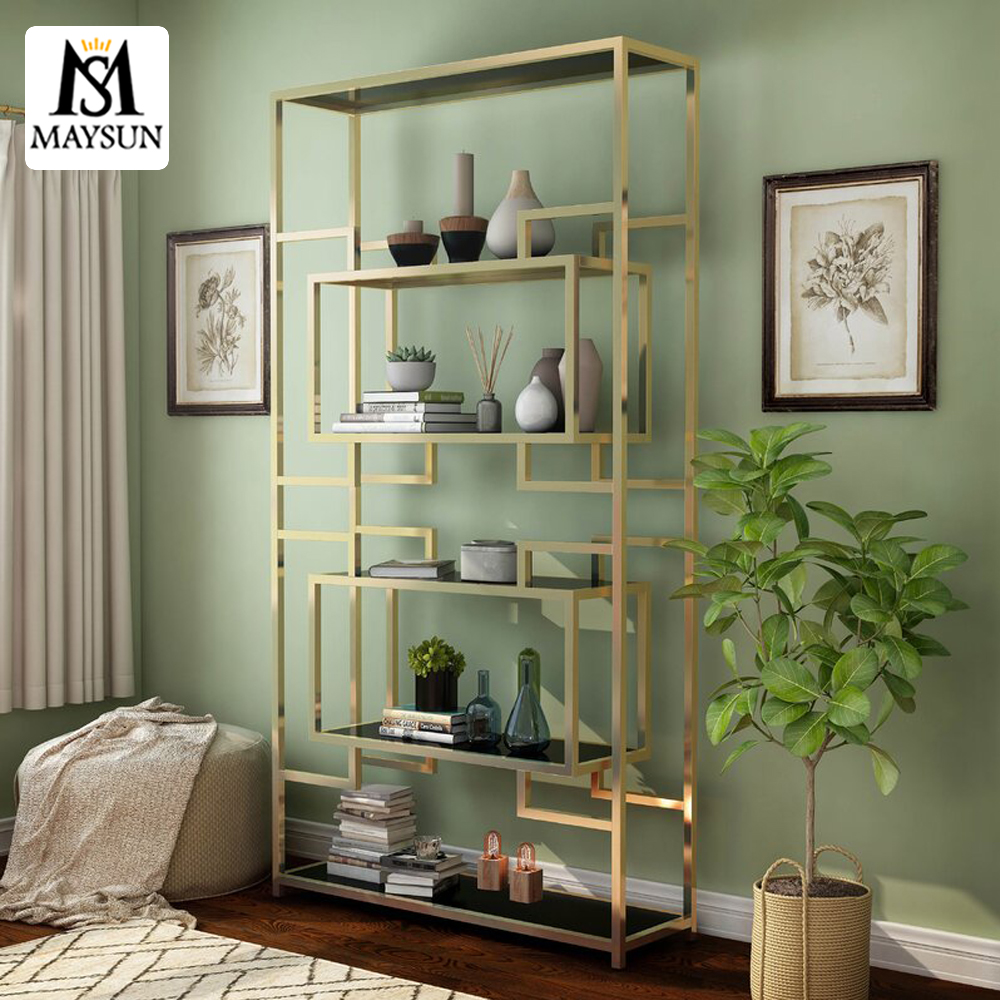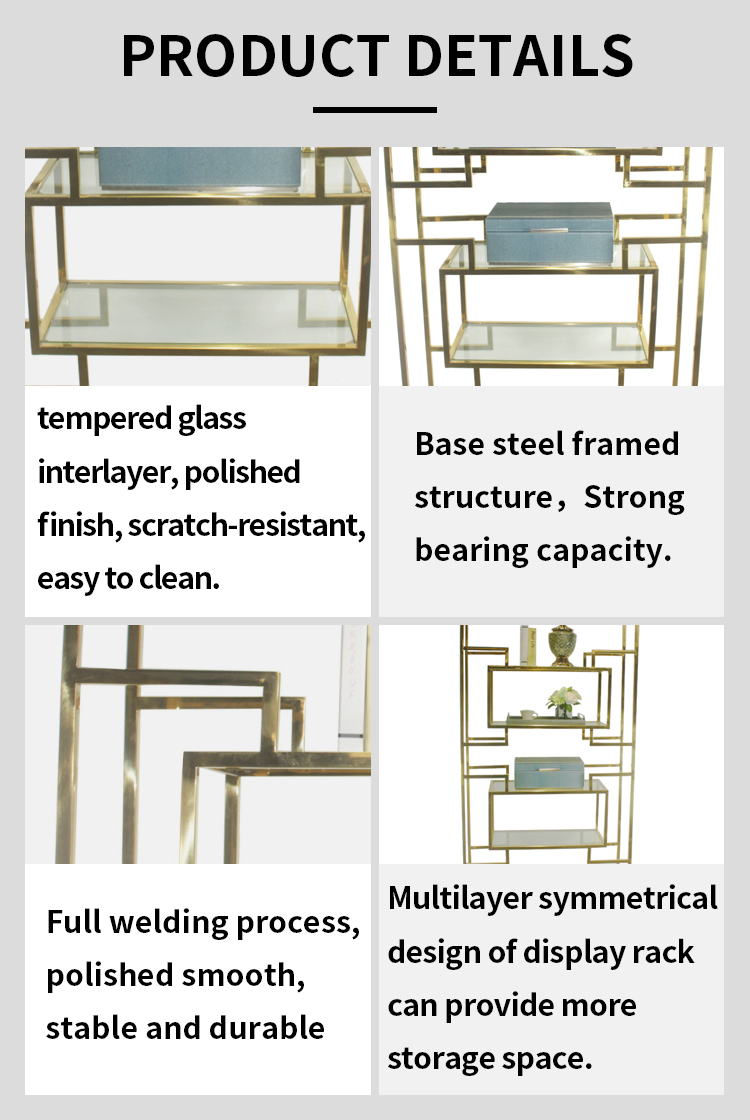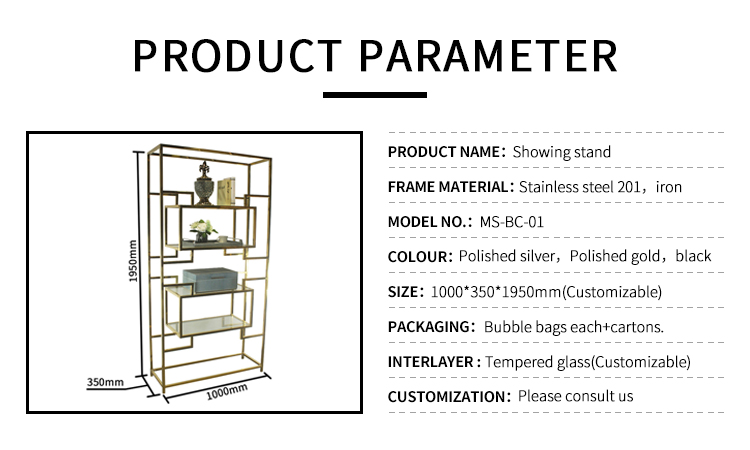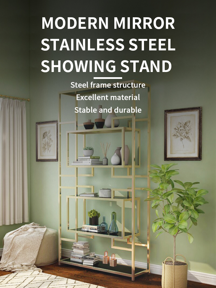 Modern Chinese mirror stainless steel gold display stand partition frame