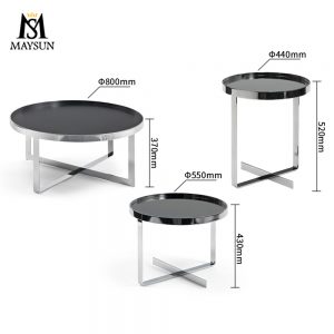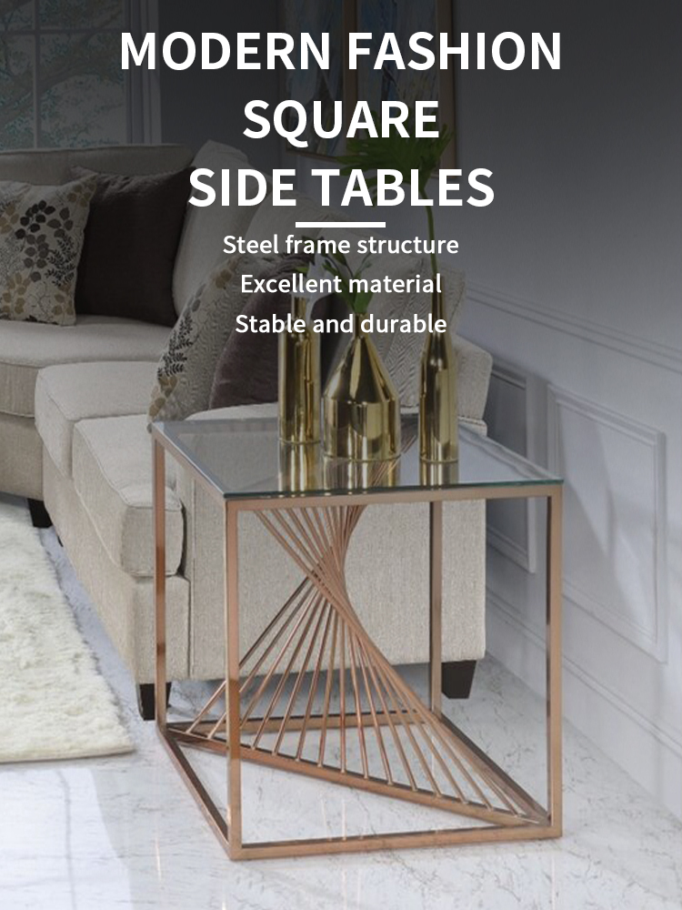 Modern fashion dynamic stainless steel square glass side table bedside table