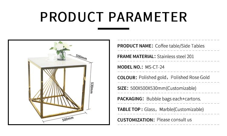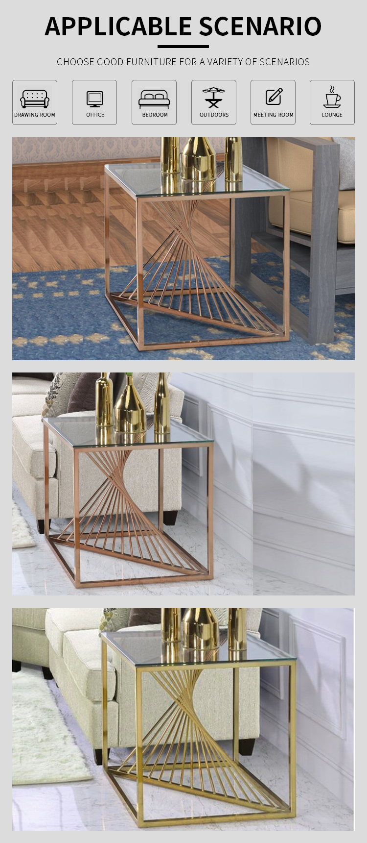 Modern fashion dynamic stainless steel square glass side table bedside table
