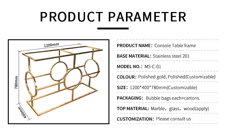 Modern fashion polished gold metal stainless steel console table frame