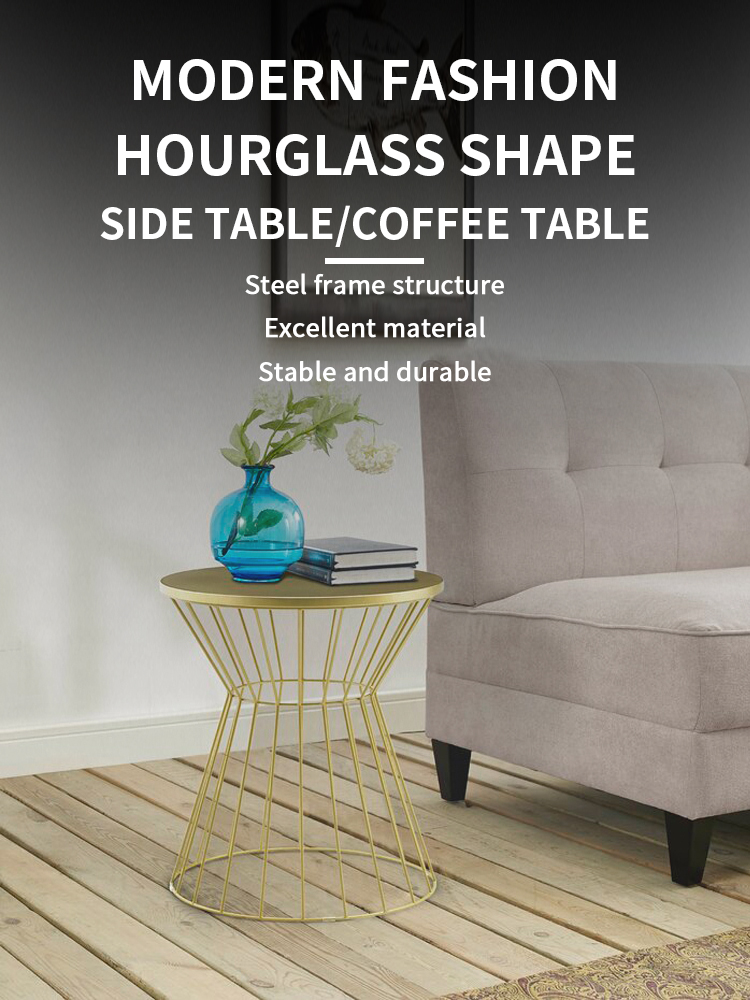 Modern light luxury fashion metal stainless steel hourglass shaped side table