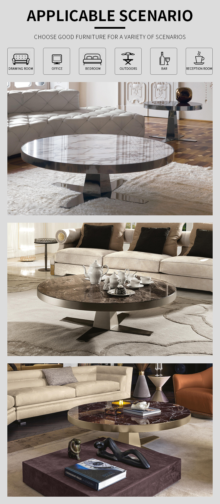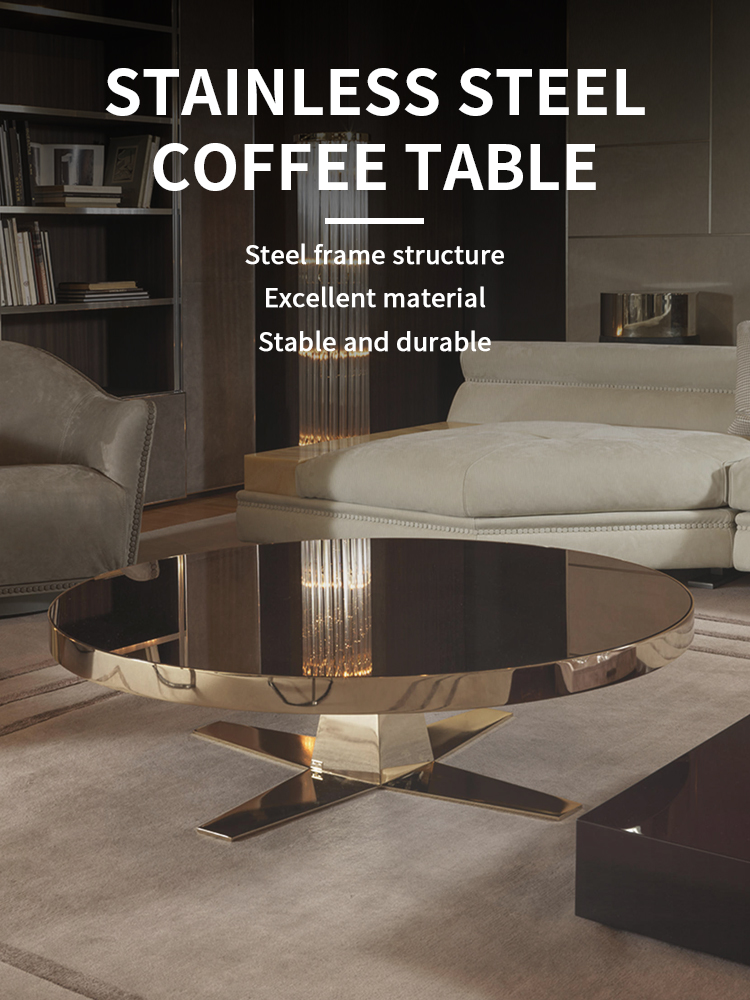 Modern luxury light stainless steel round coffee table end table