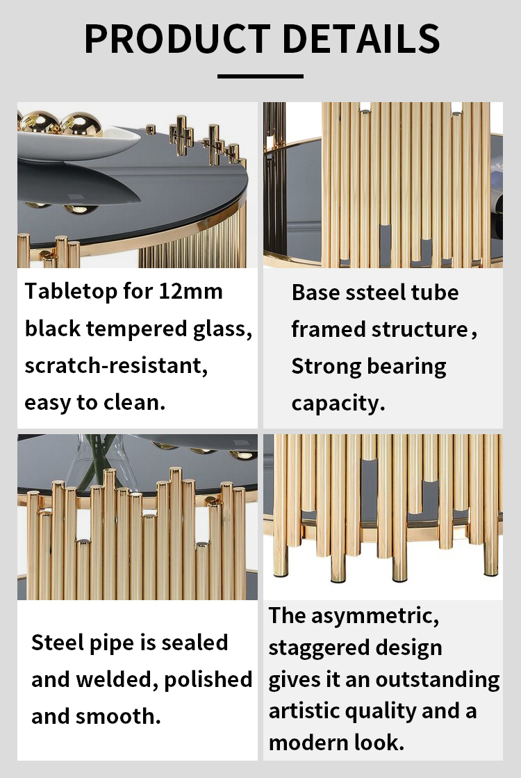 Modern Luxury Round Living Room Stainless Steel glass Coffee table
