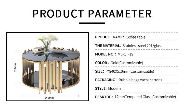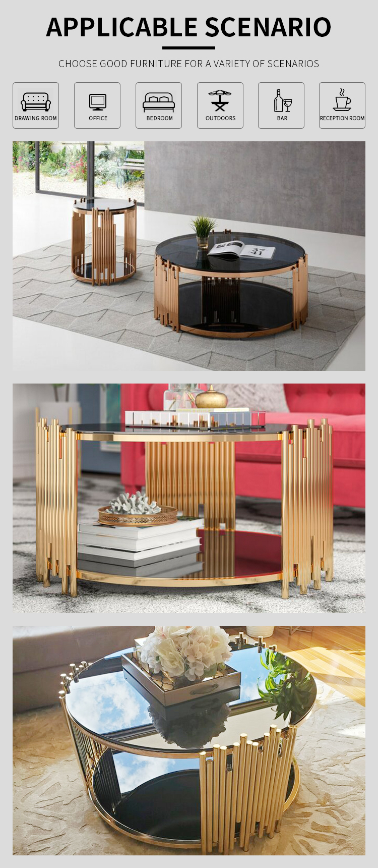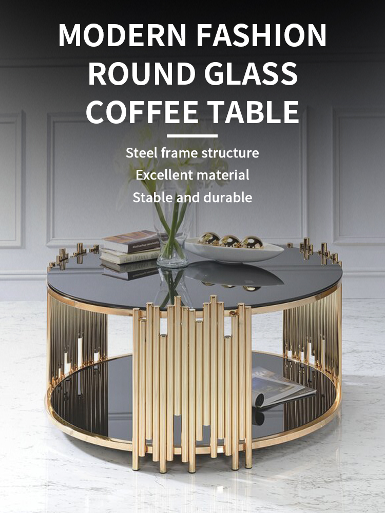 Modern Luxury Round Living Room Stainless Steel glass Coffee table