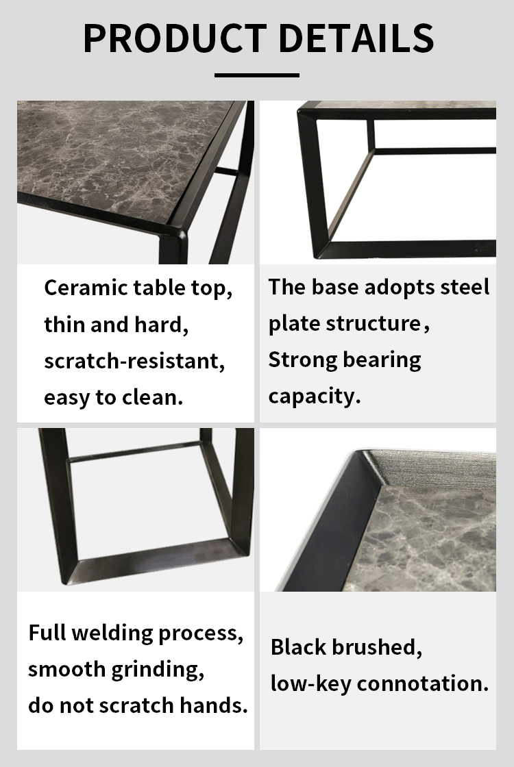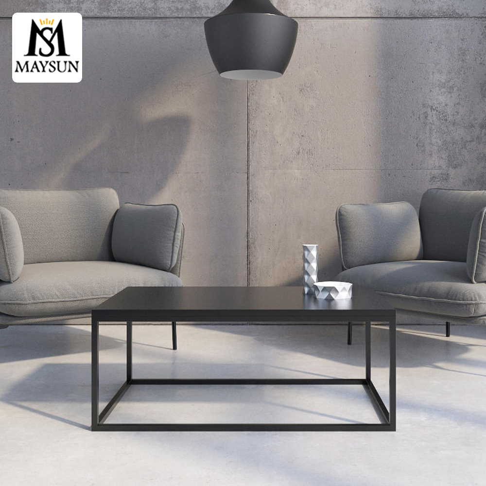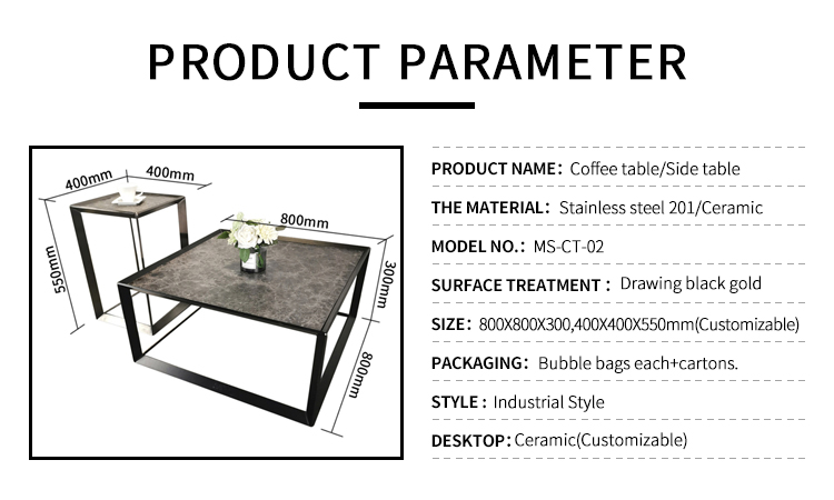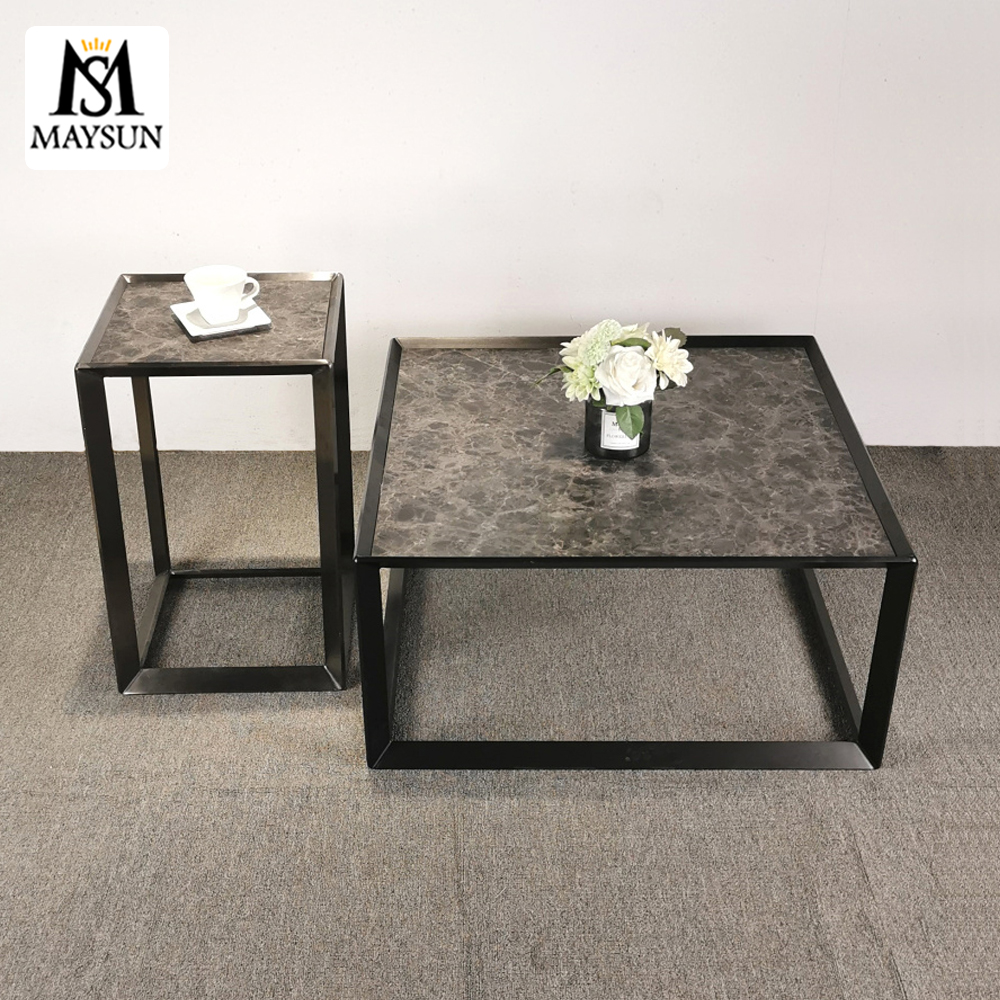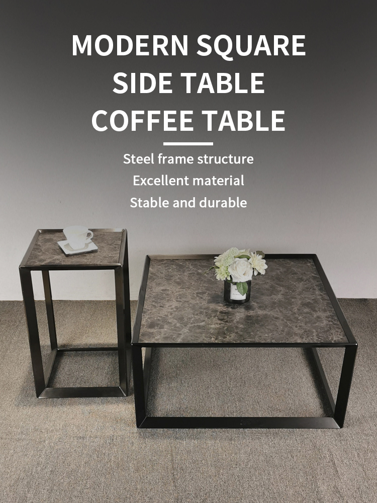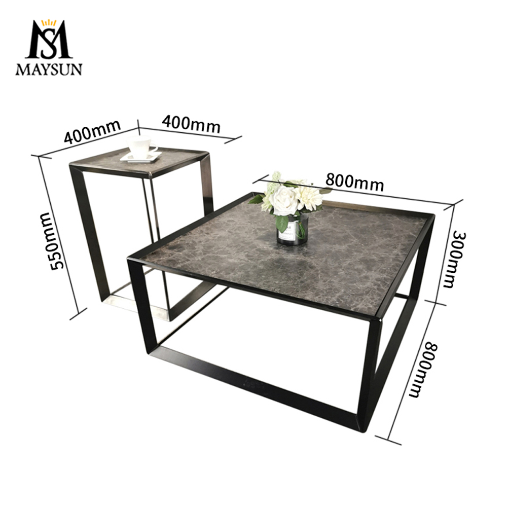 Modern Simple Black Stainless Steel square Coffee Table and metal side table
