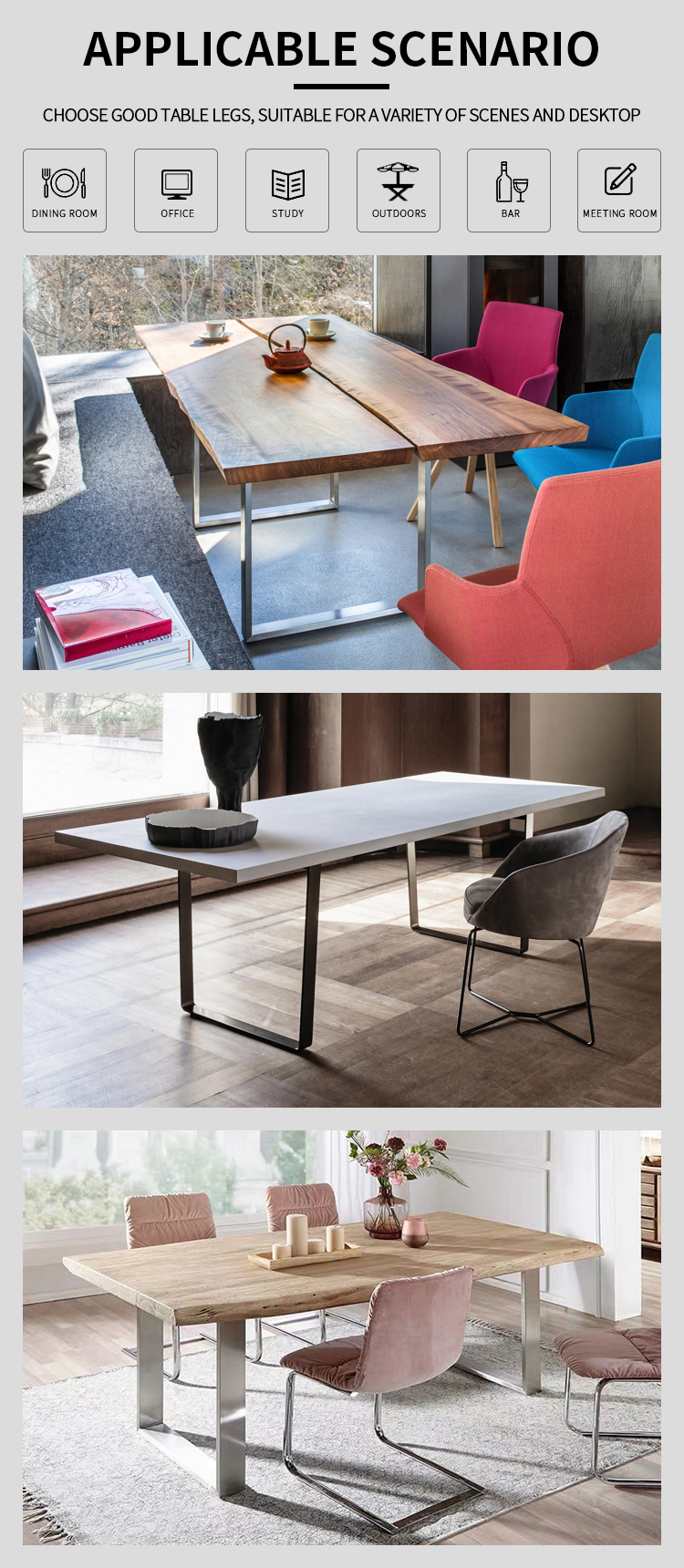 Modern style Rectangle Stainless steel Brushed dining office furniture table legs