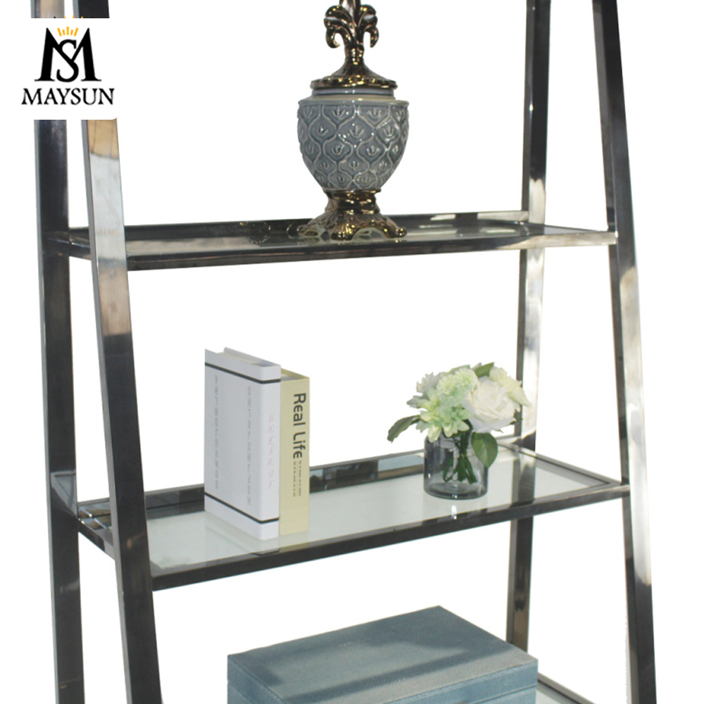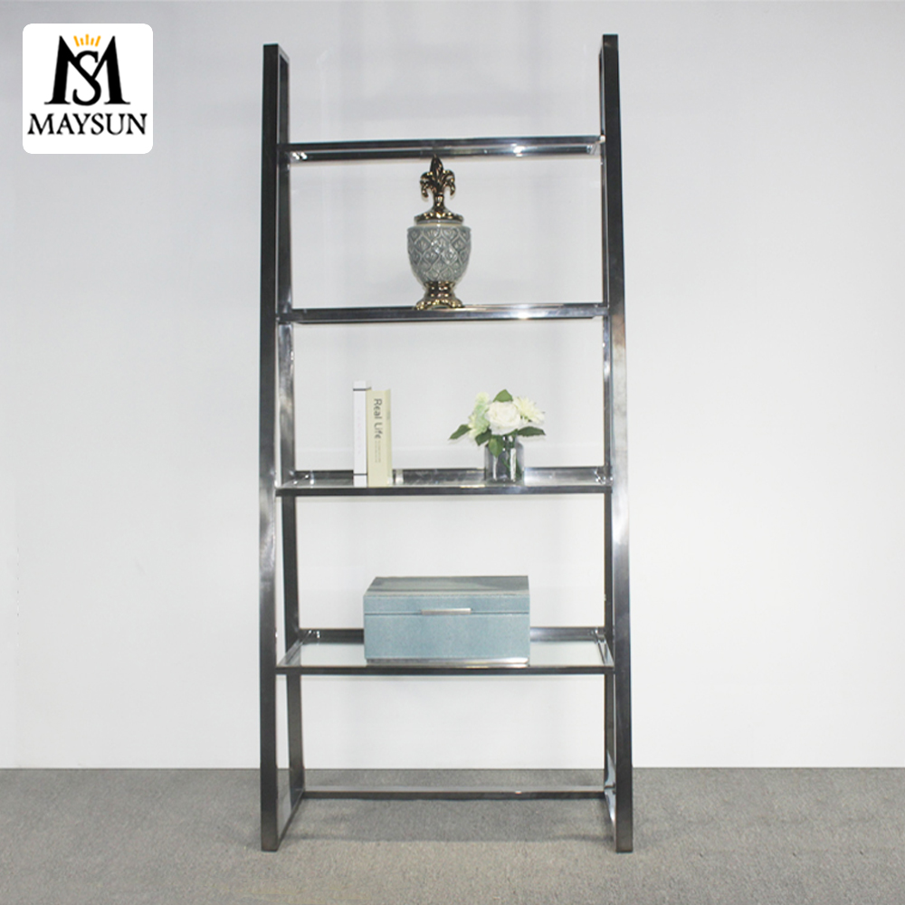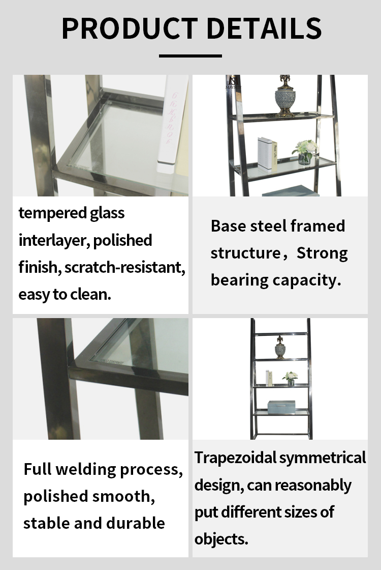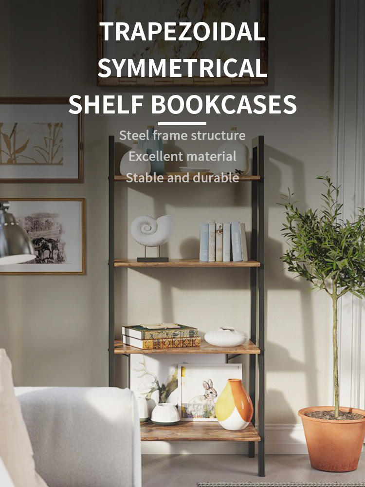 Modern trapezoidal symmetrical metal industrial black bookcases goods shelf