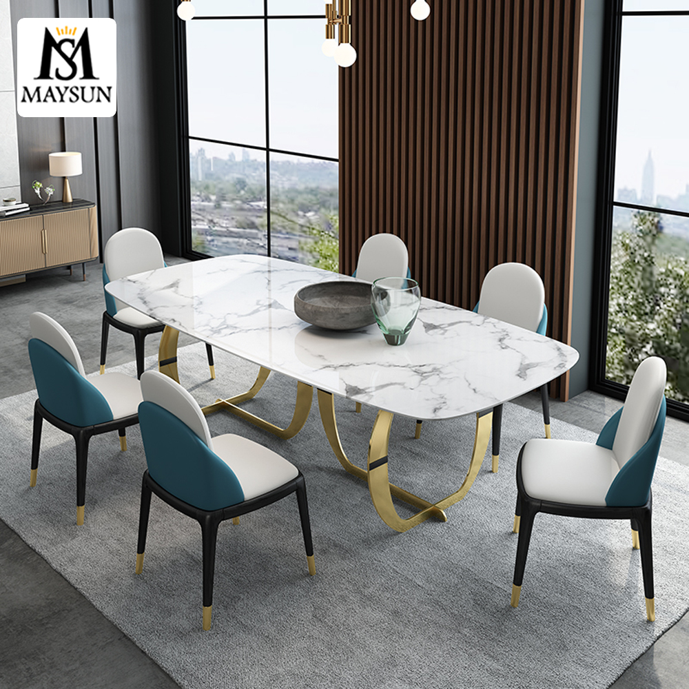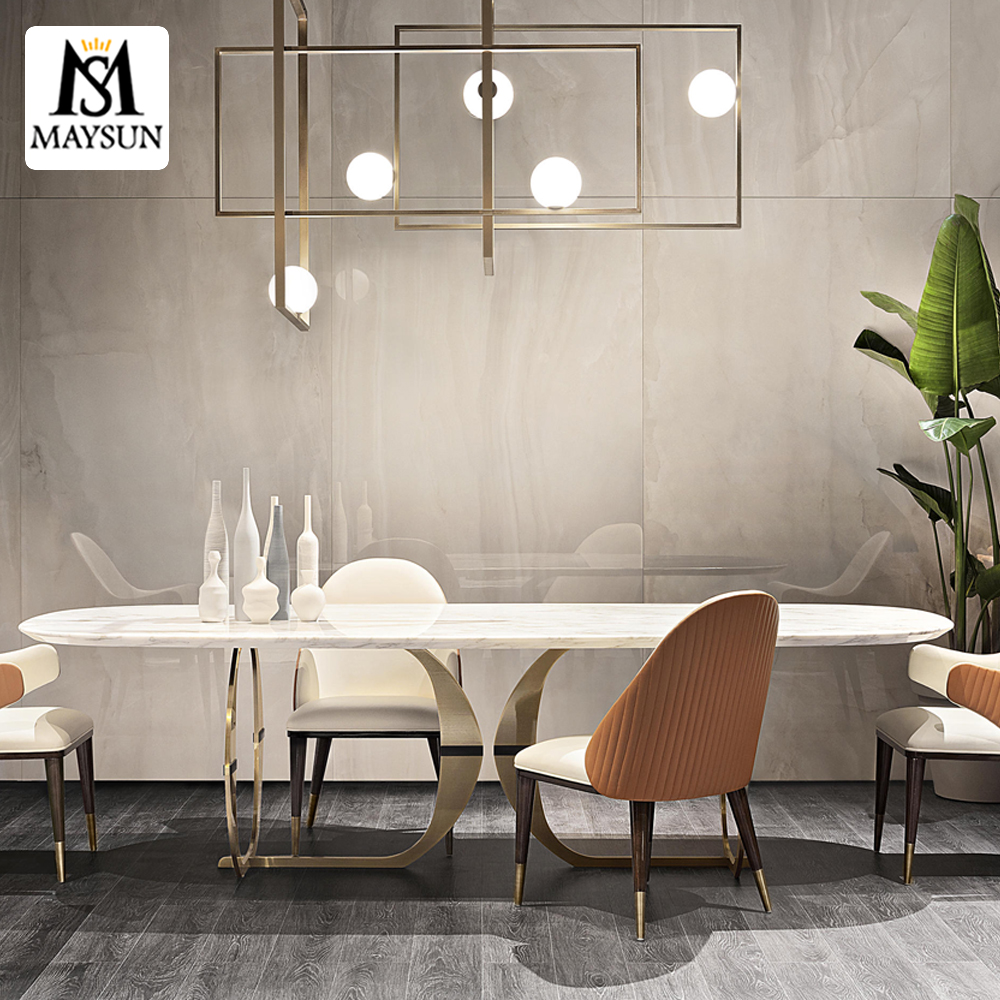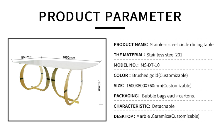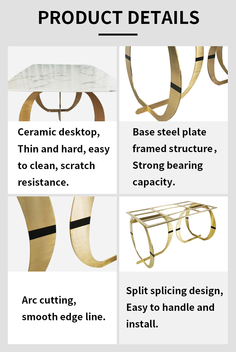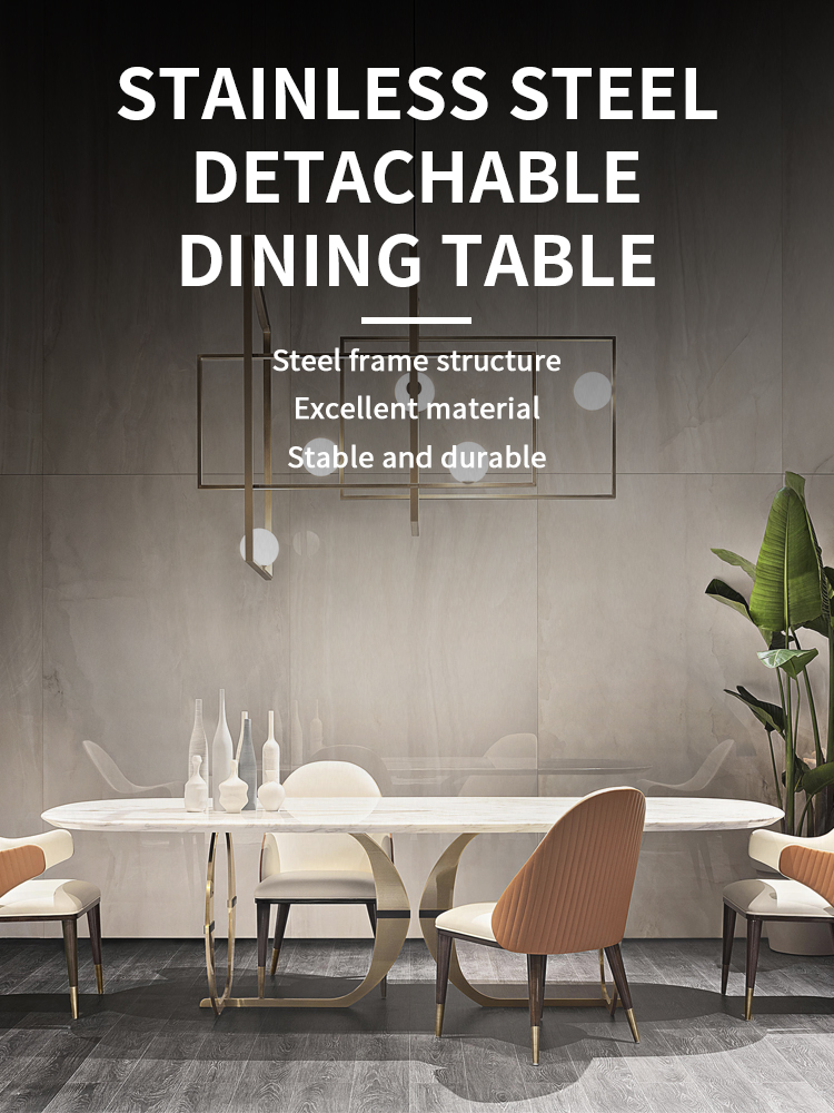 New fashionable circular arc removable stainless steel artificial stone rectangular dining table