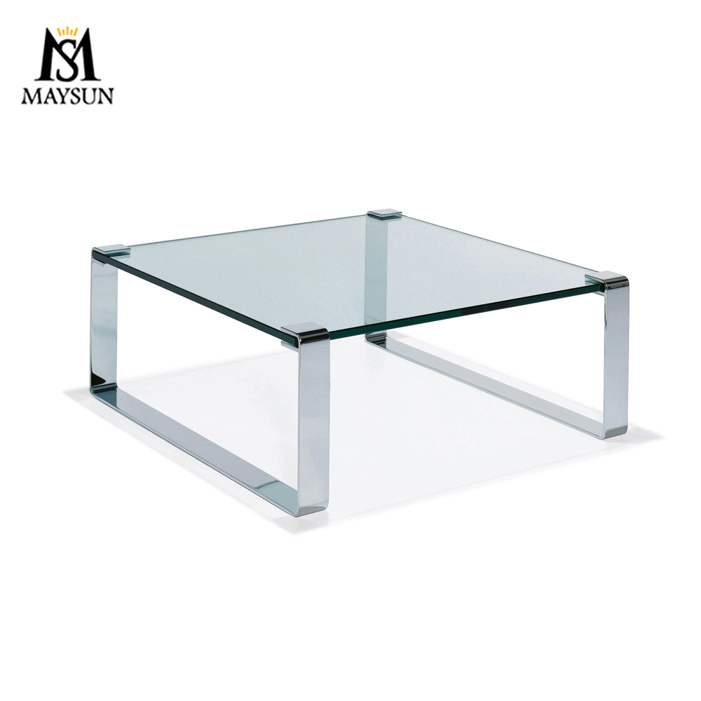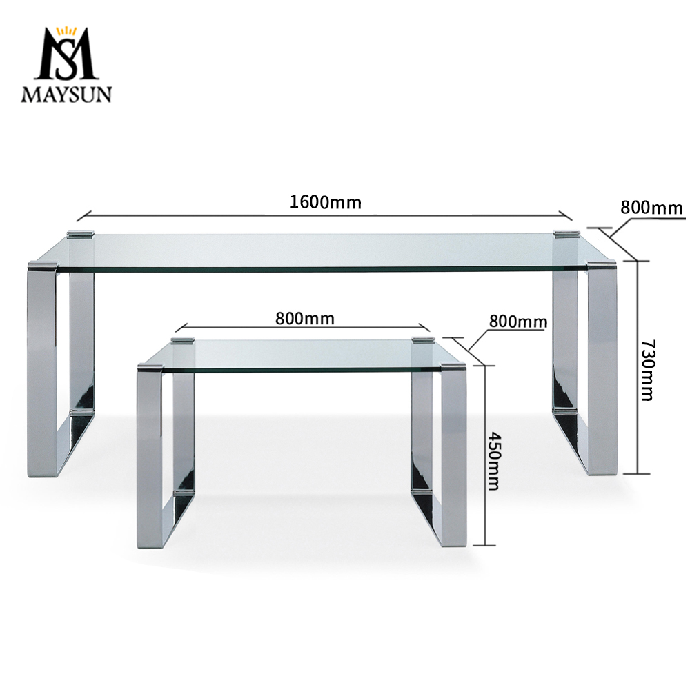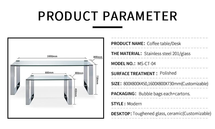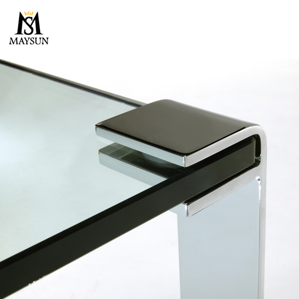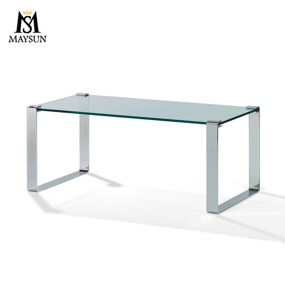 Stylish simple rectangular stainless steel desk square glass coffee table