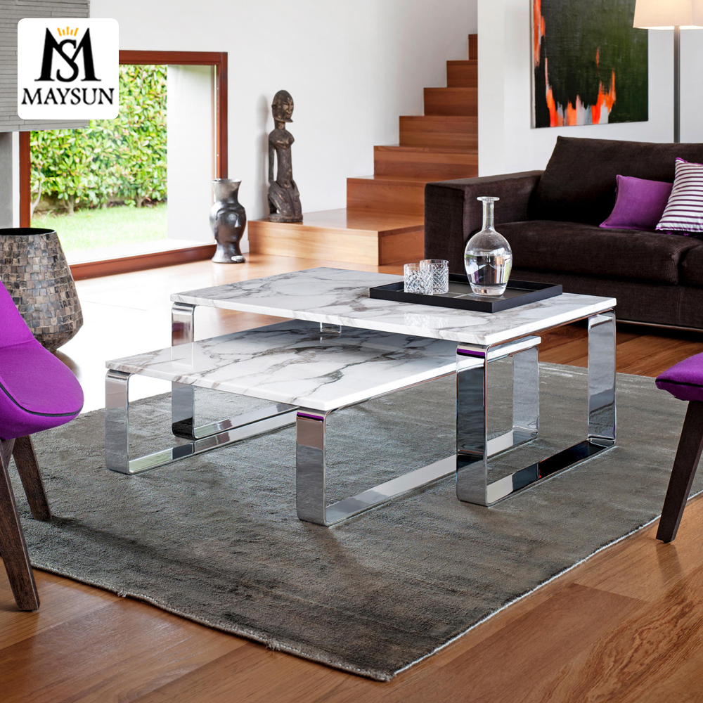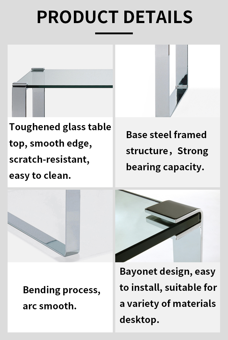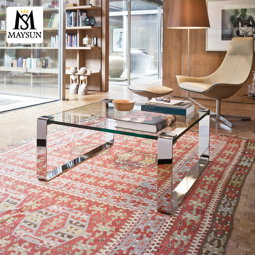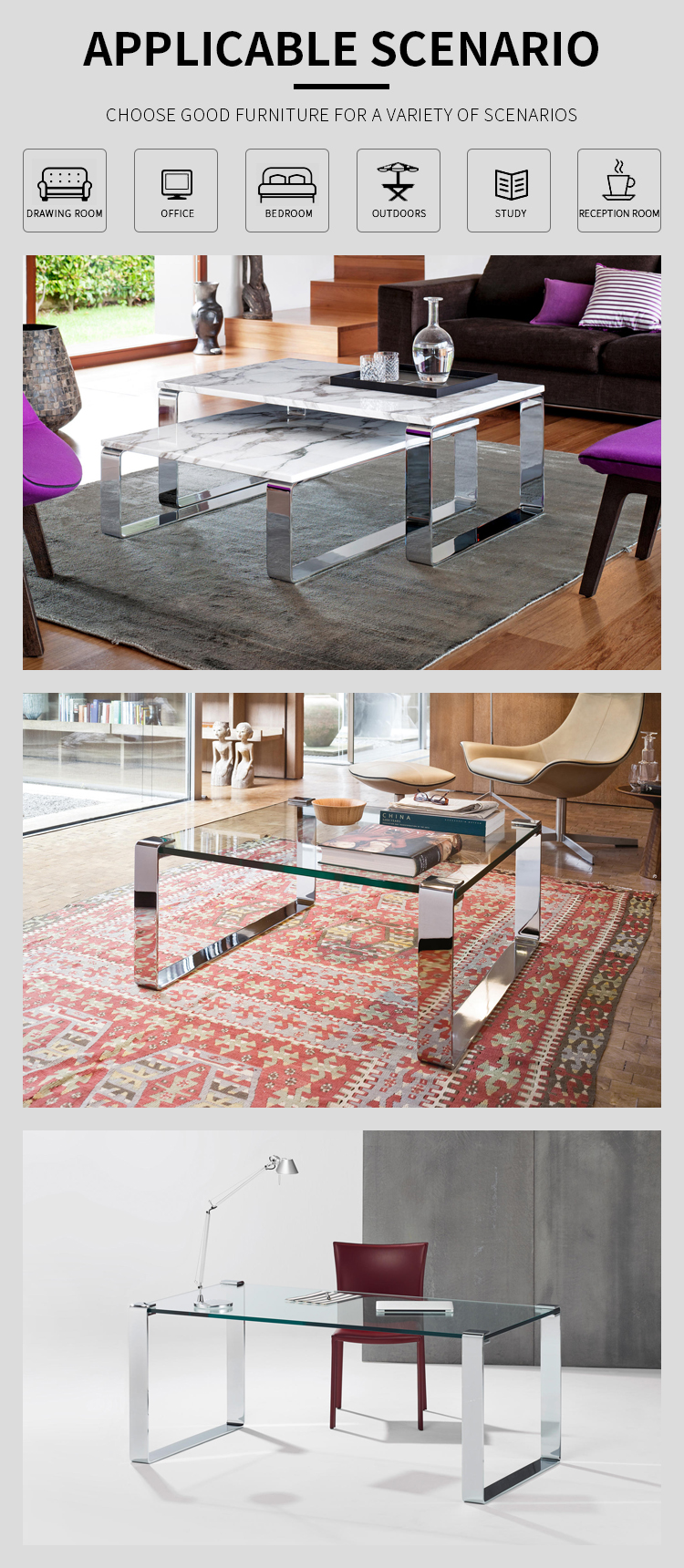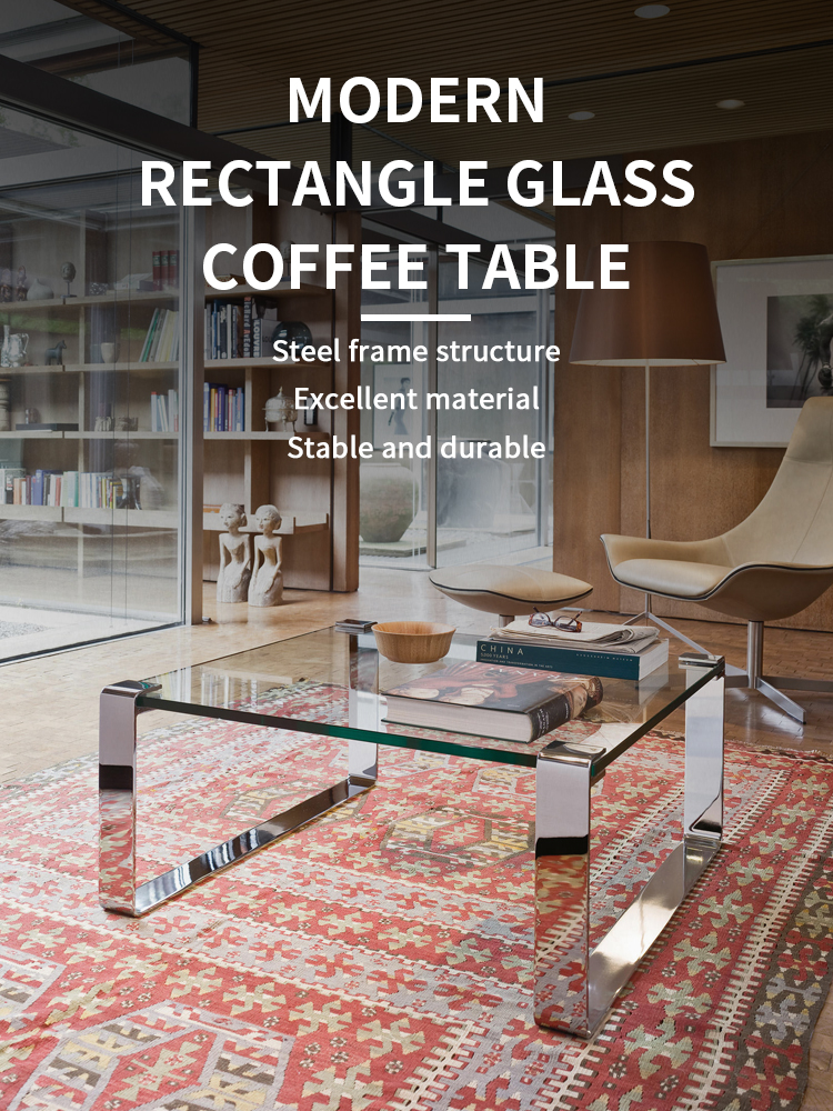 Stylish simple rectangular stainless steel desk square glass coffee table